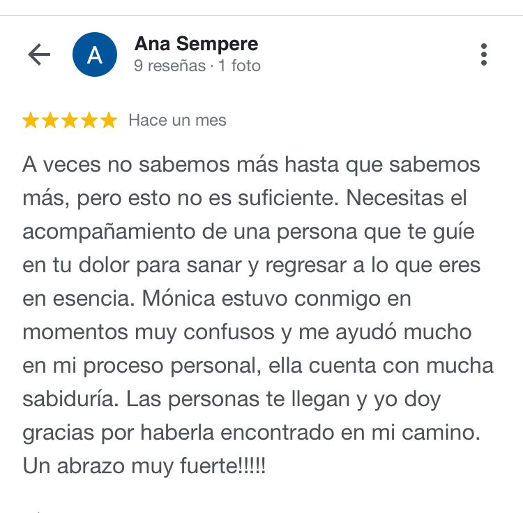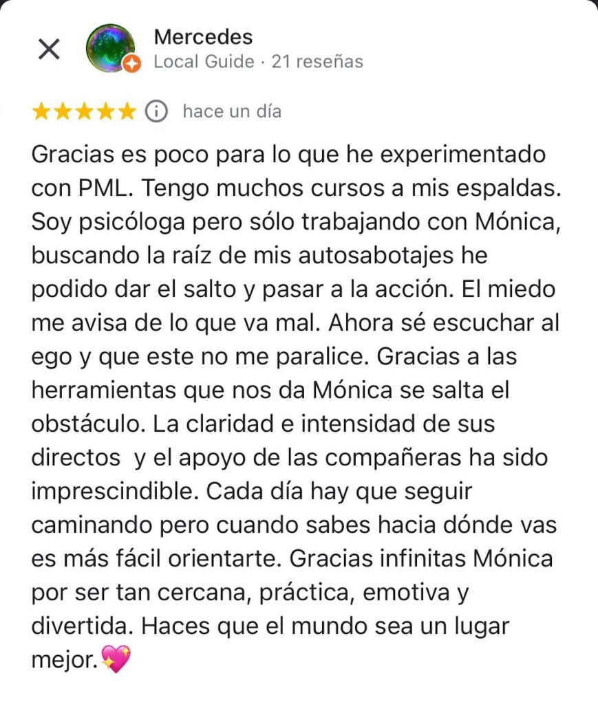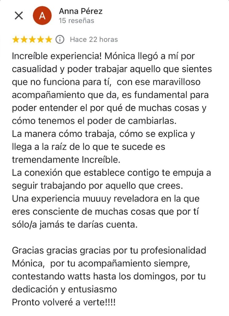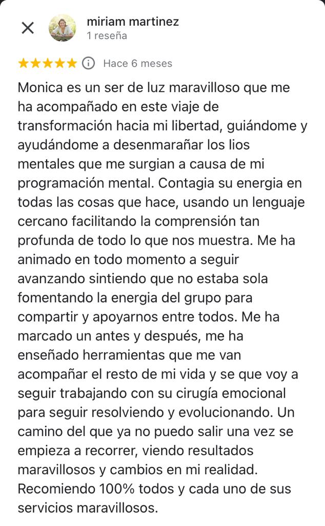 “He resuelto conflicto muy profundo que me impedían tomar las riendas de mi vida. Me siento confiada y libre”