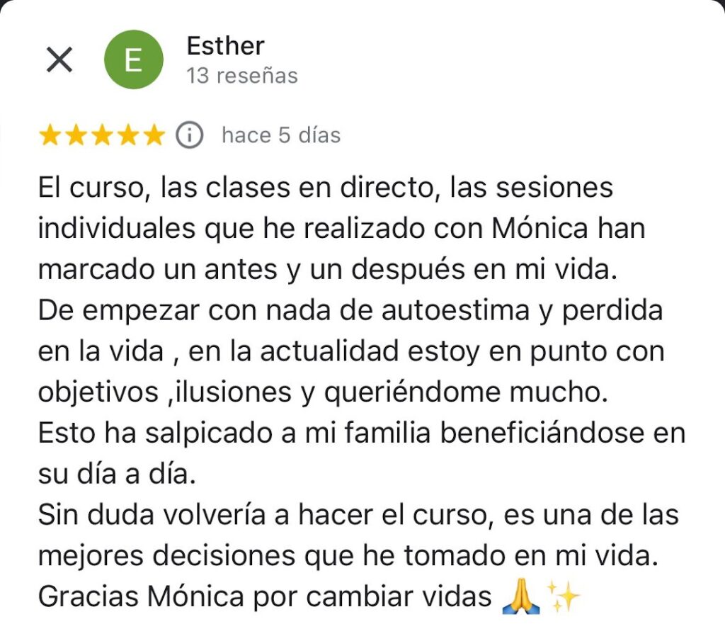 Entré al curso por sanar asuntos de relaciones y me encontré a sanar toda mi vida para existir y ser feliz